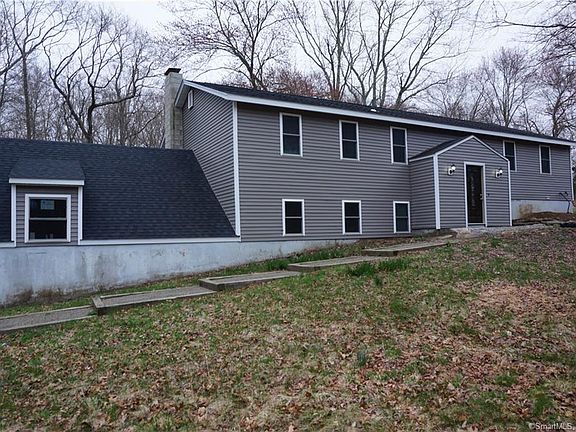 Giant potential here on this supersized raised ranch home. Projects were started and not completed. Entry foyer flooring will be completed, otherwise home sold 'as is'. All utilities on and systems are functional. Little bit of elbow and you have approximately 2500 sf of living to enjoy. Sq. Ft. currently reflects lower level den and full bath, no other areas. Owner was in the process of remodeling family room. Lower level offers fireplace, full walk out and windows! Home siding, roof and boiler have been updated. Beautiful stone walls provide a picturesque boundary of the yard. Level and spacious -gardeners dream! "As Is" sale - cash or conventional financing only please.