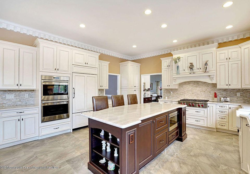 Opportunity Knocks!! Magnificent 6,200 Sq Ft. 5 BR, 4.5 Bath Colonial in highly sought neighborhood in Holmdel. Features include exquisite Brick Front Exterior, long Circular Driveway, new Paver Porch, Double Door entry to Two Story Grand Foyer w/ Marble flooring, Hardwood floors, Decorative moldings, and 10 foot ceilings thruout, Top of the Line NEW Kitchen w/ Sub Zero and Wolf Appliances, Quartzite counters, custom Two Tone Cherry Center Island w/ Subzero drawers, Farm sink, Professional Grade Hood, w. sliders to Awesome Backyard - New Patio overlooks Heated Sylvan/Anthony pool w/ Spa and Waterfall, Family Room w/ Fireplace, and First Floor Office / Den, Four Generous Sized Bedrooms on second level, including Master BR Suite w/ Sitting Area. True Holmdel luxury at its best