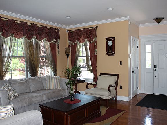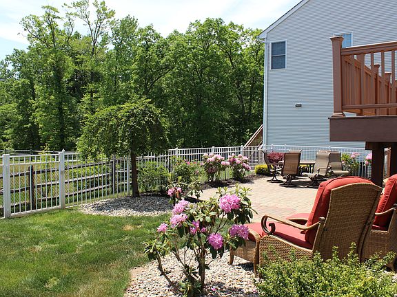 Located on quiet cul-de-sac. 4BR, 2.5 BA w/ hardwood floors on 1st & 2nd floors, recently painted, updated door casings & moldings, finished basement w/ home office & bar, fireplace w/ built in cabinets, new furnace, Jacuzzi tub in master BR, EIK w/ tiles & cherry cabinets, fenced yard w/ Trex deck, patio w/ pavers. Front & backyard landscaped w/ lighting. Great for commuters-Walking distance to NYC bus stop. Community pool, tennis court and clubhouse.