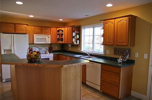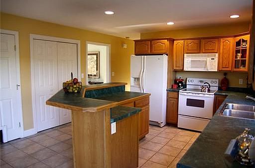 Great Colonial, surrounded by privacy w/farmer's porch & large back deck. Kitchen w/oak cabinets, ceramic floors & generous pantry. Full daylight basement offers potential for additional FR or office. Woodstove insert. Abuts 35 AC of conservation land.