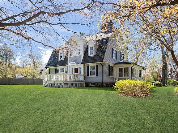The Ruth W. Colley house, a magnificent Dutch Colonial built in 1902, is nestled on a 3/4 acre lot on a cul de sac within walking distance of the Barrington Beach. This historic home was designed by the Providence architectural firm of Benjamin Wright and Norman Isham, distinguished preservationist, writer, historian and professor as well as a member of the Royal Institute of British architects and the American Institute of Architects. Step into the spacious foyer with gleaming hardwood floors and handcrafted stairway. The living room boasts an original glazed tile fireplace, hardwood floors and french doors leading to a charming heated sun room. A formal dining room with built in glass cabinets and granite counter tops make this perfect for entertaining. The music room also includes hardwood floors a delft tile fireplace with custom mantle. The spacious bright kitchen with bay window is adjacent to the mud room, full bath and laundry room for your convenience. Upstairs you will find 4 gracious bedrooms, full bath as well as two more tile fireplaces. The third floor has a fifth bedroom and ample space to expand. There is a 2 car detached garage with plenty of space to make a loft or studio. The abundant gardens, mature plantings and 3 copper beach trees add to the history of this sophisticated home. Call today!