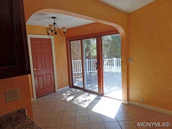 Cathedral ceiling living room with fireplace, hardwood floors, 3 bedrooms, 2 bathrooms, sky lights, granite counters, stainless appliances, washer and dryer hook up in basement. All new windows. Central air, back up generator. New Hartford schools. Month to month lease. Owner pays water, sewer, trash and does lawn and snow removal. Tenant pays all utilities including heat. 6 month minimum lease. Laundry hook up available.