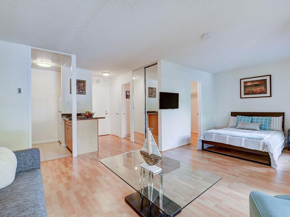 Location, location! Sweet updated studio at Watergate with a large wooden private deck. Resort style community features 24 hours security, 4 pools (2 heated year round), well equipped gym, tennis courts, racquetball courts, steam rooms, saunas, electric vehicle parking spaces and more. Free Bart shuttle. Easy access to 580/ 80/ 880 hwy. Approx 15 mins to SF downtown. Come walk along the trail for a spectacular views of San Francisco's dramatic skyline!