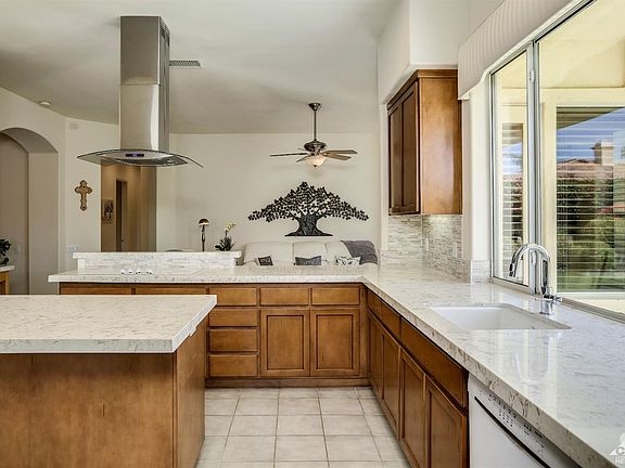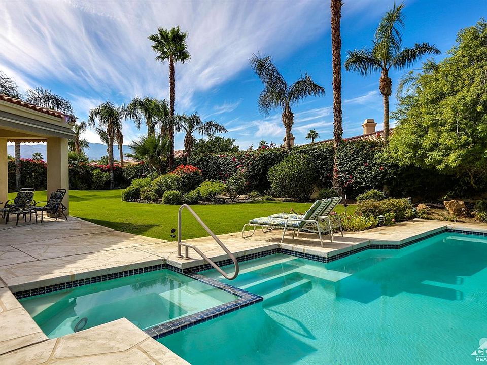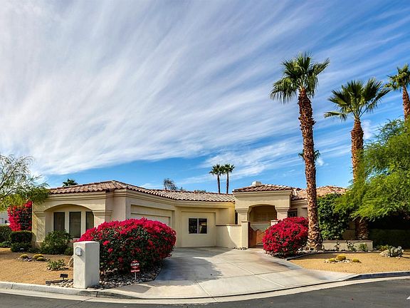 Owned solar panels, very low HOA dues, furnishings available, and the lowest-priced home in the community- this property is a must see. Located on a quiet cul de sac, it sits on a spacious lot of almost 1/3 acre and provides the utmost in privacy and comfortable desert living. The exterior of this well maintained home is enhanced by a recently installed front desert landscape design, which not only creates a lovely effect but also reduces water costs; a pool with newer pump and filter; a remote- controlled retractable awning system; and exterior lighting. When you enter this home you'll be charmed by its open feel, from the newly renovated kitchen to the family room and living room, and on to the expansive master bedroom. Tierra Vista is a centrally located gated community in the Coachella Valley with convenient access to numerous golfing, shopping, and dining options. Furnishings are negotiable outside escrow.