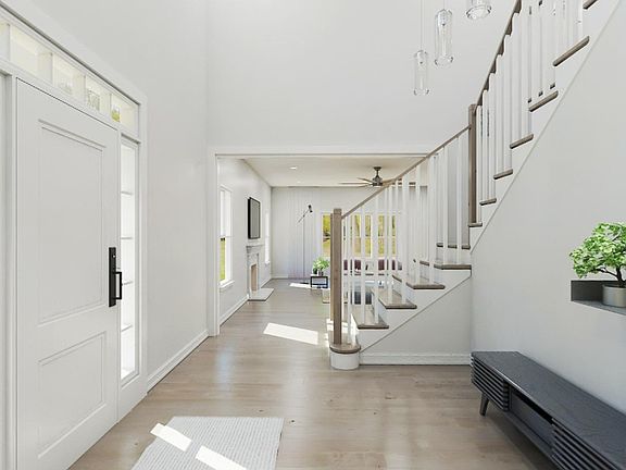 The Leyton's inviting side covered entry reveals a soaring two-story foyer, opening onto views of the spacious great room beyond. The well-equipped gourmet kitchen overlooks a sunny casual dining area, and is complete with a large center island with breakfast bar, plenty of counter and cabinet space, and a large pantry. The lovely primary bedroom suite is enhanced by dual walk-in closets and spa-like primary bath with dual-sink vanity, large luxe shower with seat, and private water closet. Central to a generous loft, secondary bedrooms feature walk-in closets and shared full hall bath. Additional highlights include a convenient powder room, centrally located laundry, and additional storage.