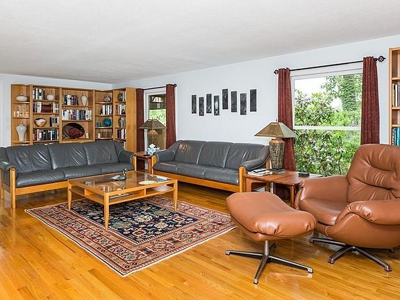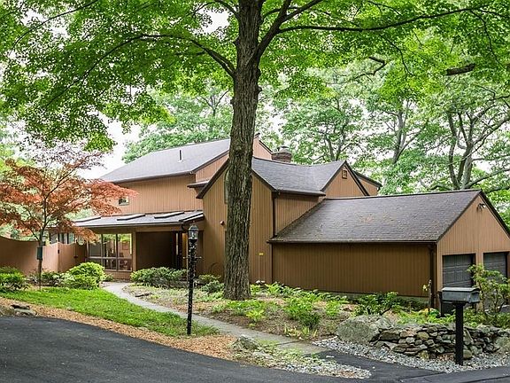 Private, mountainside location overlooking the Pioneer Valley! Unique contemporary with 9 rooms, 3 bedrooms and 3 full baths! Enjoy the view of the mountain and front yard from the wall of windows in the eat-in kitchen with cabinets aplenty, central island with double sinks, double wall oven, microwave, counter top range, dishwasher and refrigerator. Formal dining room with hardwood floors and a view of heated in ground pool.Family room has wood floors & a slider to side yard.Listen to the pond with 3 waterfalls from the screened porch with skylight that faces the inner garden area.Living room with wood burning fireplace and a first floor office with built-in bookcases.Upstairs you'll find 2 bedrooms plus the master suite with it's own studio and loft, vaulted ceilings in the sitting area , propane stove and private balcony. Walk in closet. Private bath with walk in shower with steam and private lav. Laundry on 2nd floor. Central air and vac. Basement, 2 car attached garage.