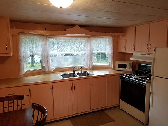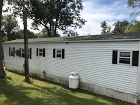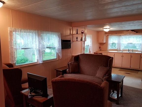 Affordable living - this 5 room mobile includes park share of $16,500. Freshly painted throughout, one bedroom plus smaller in home office with built-ins, newer flooring, roof, windows, siding, doors. Large eat-in kitchen with gas stove and refrigerator included. 3 season enclosed porch. Deck and storage shed. Monthly lot rent $250 includes water, sewer, road maintenance, taxes and trash removal. Park approval required (cori and credit will be pulled). Lawnmower included, needs some work.