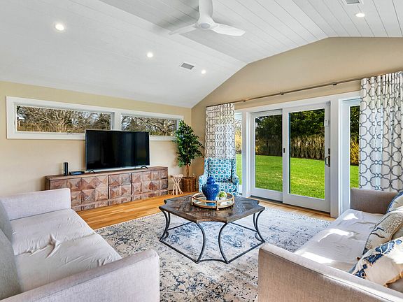 A beautiful vacation home full of charm and a backyard resort that is sure to be an unforgettable stay in Shelter Island. Perfect for a family or friends gathering, everyone is sure to experience true comfort and upscale relaxation. Whether you like to swim, kayak or paddle surf in the Peconic Bay, enjoy unparalleled amenities and outdoor adventure from your own backyard. Spanning over 1,800 square feet, this wonderfully renovated beach house, nautically-themed, is perfect for entertaining with an impressive, open concept floor plan that seamlessly blends indoor/outdoor living. Distinctive touches include light-filled spaces, oversized windows, rich hardwood floors, and warm interior tones all around. Showcase your best inner chef skills or hire a private chef to come and prepare a lavish meal for the home. The sparkling white kitchen features top of the line Bertazonni appliances, gas cooking, and a large center island. Host intimate gatherings or game night from the formal dining room. Settled just off the kitchen, enjoy thoughtful conversation or enjoy cocktails from the rear patio area. There is also a cozy pool house area with a large TV and skylights for quiet enjoyment. Four spacious bedrooms with warmth and comfort complete the main level. The Primary bedroom features a comfy King bed with direct access to the spacious backyard and a luxe ensuite bath with a deep soaking tub.Once outside, spend all day entertaining outdoors and soak up the sun from the stunning and oversized gunite pool or bluestone patio. Ensuring privacy, the property is ringed with a private hedge/ Take a swim or relax under the stars on the beautifully landscaped lawn. When you're ready to venture out, explore Peconic Bay through Menantic Creek - perfect for water activities like kayaking or paddle boarding. The Island Boat Yard and the vibrant SALT waterfront Bar and Grill are also near by. Unforgettable memories abound with Shelter Island Serene.2021-L-63
