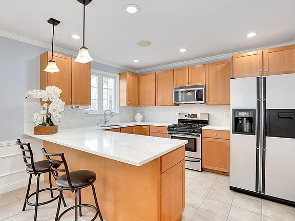 This lovingly spacious home is nestled on a quiet street just off Centre St., near shops and restaurants. The main level boasts a beautiful living room anchored by a gas fireplace. The renovated kitchen features stunning quartz countertops, stainless steel appliances, and ample storage space. The upper level includes spacious bedrooms, a full bathroom, laundry facilities, and a king-sized master bedroom with an en-suite bathroom that features a jacuzzi and walk-in closet. Enjoy the outdoors in the low-maintenance backyard, complete with two large decks perfect for relaxation. This newer home, built in 2001, offers many updates, including central A/C, central vacuum, built-in speakers, and a driveway that accommodates two cars. With easy access to highways and rail, this gem of a home is available for move-in on 10/1/2024! Tenants are responsible for all utilities, including water, gas, and electricity. The first month's rent, last month's rent, and a security deposit of $4,600 are required at the time of lease signing. Pets are allowed. Good credit and renters' insurance are required. Please TEXT Grace to schedule a tour. When you send a text message, kindly include your planned move-in date and how long you intend to lease the house. Thank you!