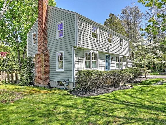 Your private oasis in the middle of Barrington! Located on a quiet street in the Nayatt School district, this attractive 4 bedroom, 2 ½ bath colonial checks every box. The well-maintained interior features a tiled kitchen floor and breakfast area with access into the garage. Step down into the carpeted family room with beautiful natural light, remote-operated skylights and French doors. Wood floors throughout the rest of the house. Front-to-back living room with fireplace, custom built-ins, and more French doors that open to a charming, Kevin Baker-designed stone patio and firepit. The primary bedroom is oversized with an added large walk-in closet and spa bath with radiant-heated floors. The finished basement includes a large, newly carpeted playroom with built-ins and cedar closet. True 2-car attached garage, with spacious attached addition for your family’s bikes, sports gear and gardening tools. The exterior provides true privacy, featuring a near-double lot with trees, garden and well-tended mature plantings, with sunny southern exposure. The stone patio/firepit connects to a sparkling, Mediterranean-style in-ground pool for entertaining and fun with cedar outdoor shower. Close to bike path, water access, RI Country Club and blue-ribbon schools.