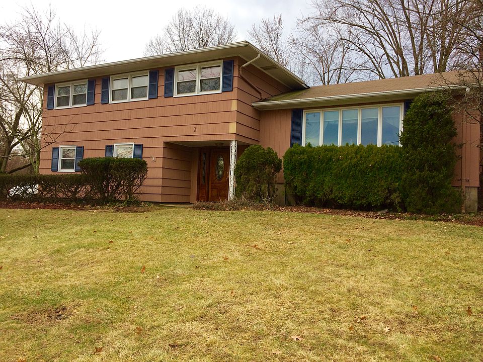 4 BR, 2.5 BA Split on corner property, 1 block from elementary school. Fenced backyard plus dog run. Family room w/sliders to covered patio. Expanded kitchen opens to rear deck. HW Baseboard heat. Central A/C. Generous room sizes. Master BR has bath & walk-in closet. 2-car garage.