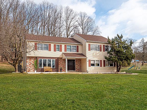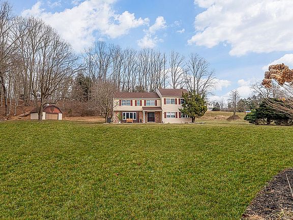 A rare find, this 2900+ square feet, 5 bedrooms, 3.1 bath home is located on 2.15 acres with a pool! The living room flows into the dining room, which completely opens to the kitchen, making this a very usable space. The updated kitchen features off-white cabinetry with granite countertops, a beautiful tile backsplash, and stainless steel appliances. A cozy sitting room/study with a fireplace has sliding glass doors to the sunroom. A very spacious family room with sliding doors to the outside. A powder room completes the first floor. Upstairs you will find an expansive master suite with a vaulted ceiling, a sitting area, and a full bath. Renovated in 2020, the hall bath offers a double vanity and on-trend finishes. 3 bedrooms share this hall bath, and another bedroom features an ensuite bathroom. This could easily be used as a second master suite. This home also has a detached garage, which could also be used as a workshop. The private pool and large backyard make this the perfect outdoor oasis. These homeowners have meticulously updated and maintained this home. It is immaculate and move-in ready!