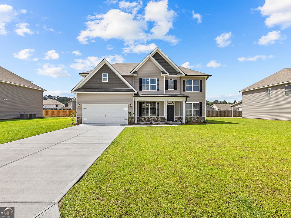 This home is pure elegance! The inviting 2 story foyer brings you in to the home that features 5 bedrooms, 3 full baths, an oversized media room and a study. Gorgeous coffered ceilings in the dining room. The great room features arched columns and a cozy fireplace. LVP flooring throughout the main living areas. Master suite features a warm and inviting fireplace as well as a sitting room. Dont miss out on this beautiful 3450 plan by Faircloth Homes!