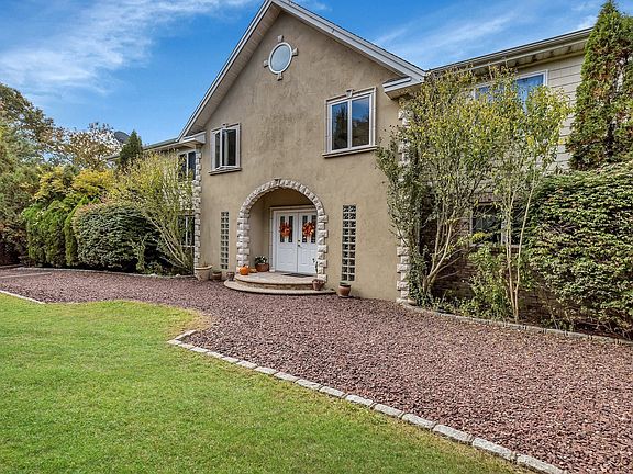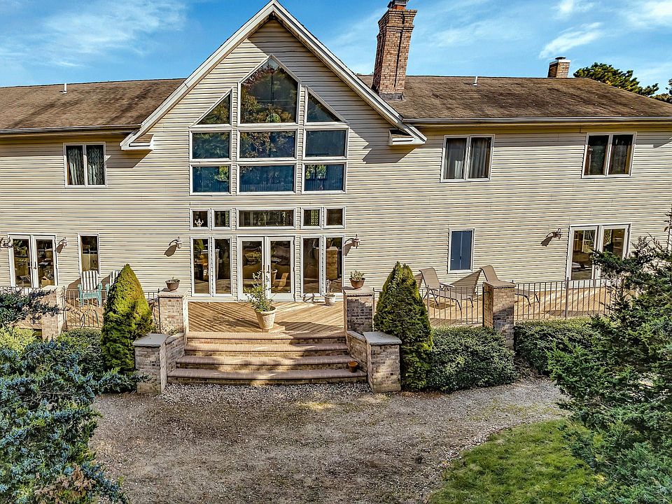 Nestled in the heart of Westhampton, a hidden gem awaits. This exquisite 4900 square foot sanctuary boasts an alluring blend of contemporary design and rustic charm. With 4 bedrooms and 3 baths, this spacious haven offers the perfect balance of comfort and luxury. The heart of this remarkable home is its striking 32-foot A-frame structure, featuring floor-to-ceiling windows that grant you a breathtaking view of the serene path leading to the pond. Whether you're admiring the changing seasons or cozying up by the fireplace, this space will become your cherished sanctuary. This thoughtfully designed home is divided into both south and north wings. On the upper level of the south wing, discover three generously sized bedrooms that share a beautifully appointed, spacious bathroom. The lower level boasts an expansive open den with a welcoming fireplace, perfect for gatherings. Additionally, a library(office) and another bathroom can be found on the lower level, adding to the home's functionality and charm. The upper level of the north wing is home to a master bedroom suite, complete with a generously proportioned bathroom and a soothing jacuzzi. A convenient laundry room is also situated on this level. On the lower level, you'll find a chef's dream kitchen with a bar, easily accommodating 8 to 10 people for dining. A vaulted ceiling pass-through hall adds to the grandeur, while porcelain tile and oak wood floors provide an elegant touch. The dining room, with ample space for 14 diners completes this exceptional area. Beyond the impeccable craftsmanship and architectural finesse lies a residence that seamlessly integrates the allure of nature with the comforts of modern living. A haven that promises not just a home, but an idyllic lifestyle that transcends the ordinary. Explore the epitome of luxurious living in Westhampton, where every moment is an opportunity to savor the finer things in life. Don't miss the chance to claim this sanctuary as your own.
