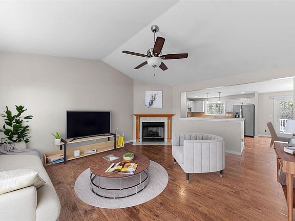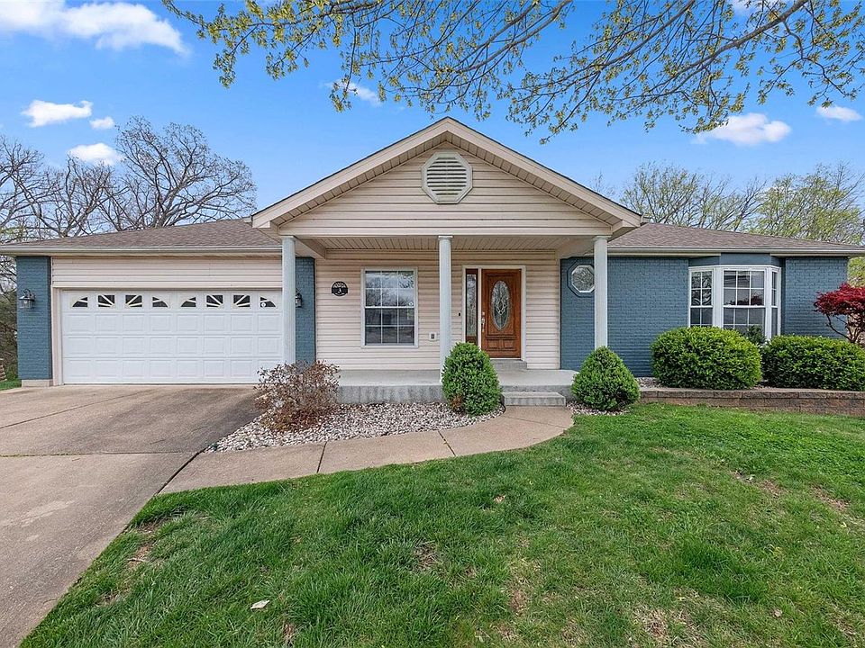 Step into this move-in ready, 3-bed/3-bath ranch-style home w/OPEN floor plan. The vaulted great room w/fireplace seamlessly leads to a beautiful kitchen flooded w/natural light boasting granite countertops, stainless steel appliances, custom cabinetry, a stylish backsplash, & center island. Enjoy plank flooring on most of the main level, leading to convenient main floor laundry, Primary Suite w/tray ceiling and En Suite Bath, 2nd BR PLUS a home office surrounded by windows & views of the woods. Delight in the professionally landscaped yard from the stunning oversized deck. The finished basement offers a 3rd bedroom, bonus room, additional living space, walkout access, & an outdoor entry to a versatile 12x12 storage area w/HVAC, suitable for a workshop or extra storage. The fully fenced private backyard, backing to trees, features a lower level patio perfect for additional entertaining space. Situated in a cul-de-sac just minutes from HWY 364. Don't miss the chance to see this home!