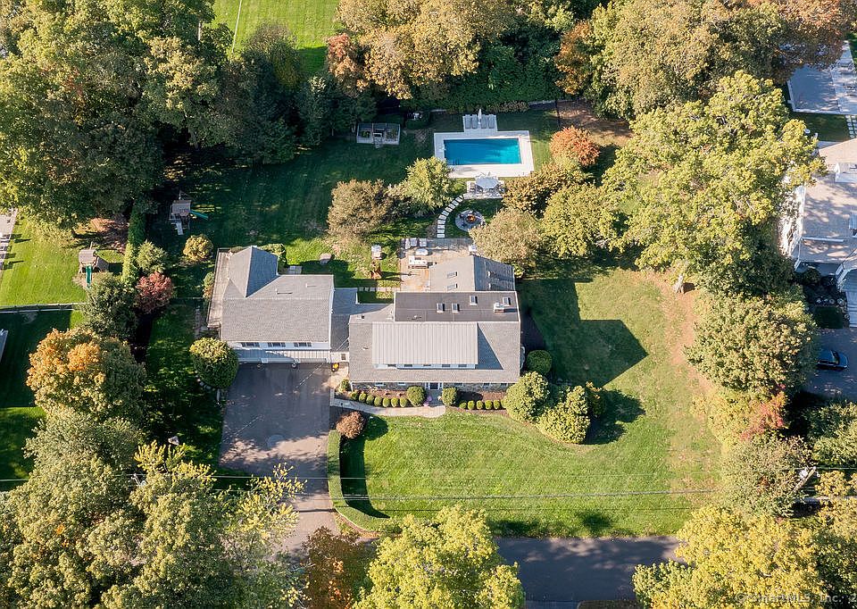 Located in the heart of one of Westports most coveted walk to town cul-de-sac locations on 1+ac. This sun-drenched 6 bdrm home blends timeless charm w/sophisticated modern renovations. Spanning over 5,000 sqft on stunning flat lush 1.02ac lot this home is perfectly situated for live-in child care/extended family members and effortless entertaining.Step inside to a reimagined custom kitchen w/high-end appliances, granite counters, lg island & open flow to fabulous fireside vaulted-ceiling great rm that steals the show w/dramatic 2-story stone FP, wet bar, & walls of windows framing manicured gardens beyond. A versatile main level office/guest suite w/en-suite bath & adjacent study/playroom adds flexible functionality while primary suite upstairs offers a peaceful sanctuary w/vaulted ceiling & updated bath w/radiant heat. Study nook, laundry, new hall bath & 2 addn'l bedrms complete upper level. 3 car double deep garage (1200 sq ft). Legal accessory apartment w/private entrance, wrap around deck, full kitchen, renovated bath/laundry, bedroom & stunning light filled great room w/vaulted ceiling overlooking gorgeous grounds.Outside, paradise awaits w/Mature specimen trees, meticulously landscaped grounds, fully fenced organic vegetable garden w/irrigation, outdoor shower, & sparkling heated salt water pool w/auto cover create a private resort oasis, ideal for summer entertainment. Just moments from Westports vibrant shops top rated schools & LIS beaches.This idyllic property