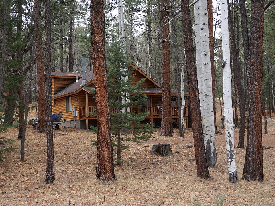SWEET & COZY 2BD PLUS LARGE LOFT 2BA HIGH COUNTRY CABIN LOCATED JUST OFF THE CORONADO TRAIL. EASY ACCESS FOR RETIREMENT OR WINTER HOLIDAYS IN THE MOUNTAINS. NESTLED IN MATURE PINE, OAK AND ASPEN TREES. COVERED WRAP AROUND DECK ON 2 SIDES IS PERFECT FOR MORNING COFFEE AND AFTERNOON BBQs. ROCK FACIA WOOD BURNING INSERT AND CENTRAL FURNACE. ALPINE WATER/SEWER. ELECT/PHONE. LARGE LOFT WITH DORMER IS A GREAT BONUS. NEW LAMINANT FLOORING DOWNSTAIRS & NEW CARPET IN LOFT. SS APPLIANCES. STACK W/D. MOSTLY FURNISHED. LOG SIDED.