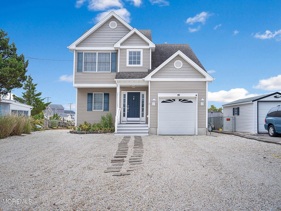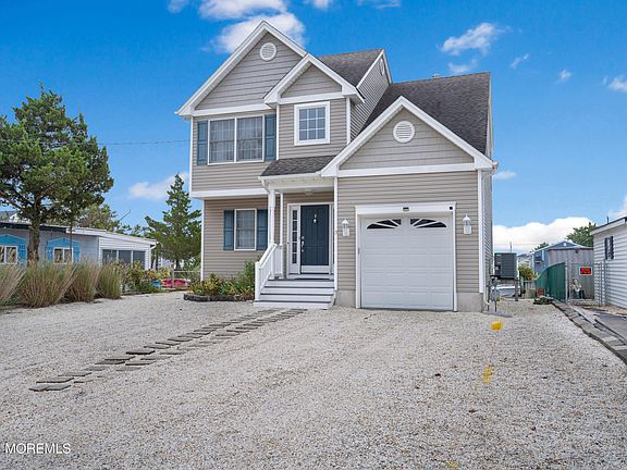 This beautiful custom-built waterfront home in The Great 08087 has much to offer. It features three bedrooms, two and a half bathrooms, and a wide-open, free-flowing floor plan. The first floor has a powder room, kitchen, living room, dining area, and a beautiful deck overlooking the water and sunsets. The second floor features the primary suite with vaulted ceilings, a walk-in closet, a full bathroom, and a private deck. There are two other nicely sized bedrooms on this level as well. There is stone landscaping, a vinyl bulkhead and dock, and a one-car garage.