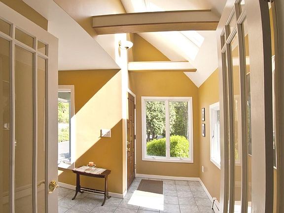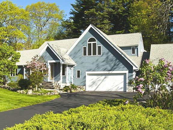 Private, Spacious Cape On Cul-de-sac. Available immediately, Title V approved, expansive, 4-bedroom custom cape in tranquil setting with hardwood throughout, soaring ceilings, large, bright rooms in open floor plan.  2+ acres includes open yard for sports and wooded acre with pond frontage for fishing and ice skating.  Great room/library with floor-to-ceiling fireplace, mahogany cathedral ceiling and built-in bookcase. Kitchen with custom cabinetry, center island, pantry and granite opens to large dining room and 2nd fireplace. Mahogany deck with pagoda-style gazebo. Enormous master suite with cathedral & his/her's walk-in closet. Large bedrooms with plenty of closets. 2nd flr laundry/gift-wrap room.  Separate office suite, Fios internet (Gigabit service available), acoustically-controlled recording/media studio. Also, large 25x19 artist studio/workshop w/10' ceiling. Heated/cooled oversized 3rd garage bay. Beautiful landscaping, lush perennial and organic gardens and stone walkways.