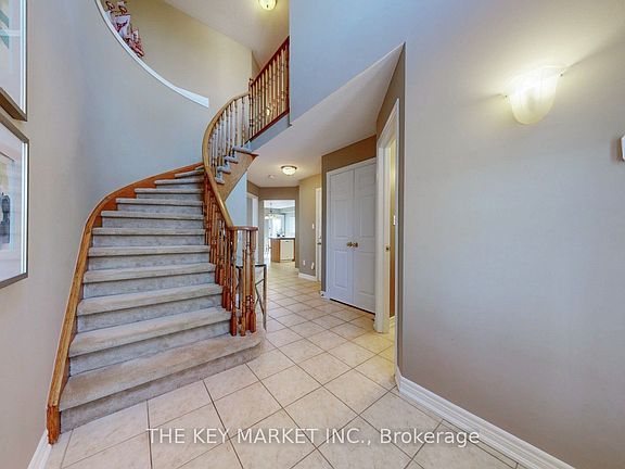 Welcome to this stunning family home in one of Brooklins most sought-after neighborhoods, perfectly situated on a quiet crescent with a large, open rectangular lot. Thoughtfully designed and beautifully maintained, this 3-bedroom, 3-bathroom home offers an exceptional blend of comfort, style, and functionality. A covered front porch with stone stairs and interlocked driveway creates an inviting curb appeal, while the fully fenced and interlocked backyard offers a private retreat with a vegetable garden, flower beds, lush landscaping, green space and a custom shedideal for outdoor entertaining or quiet relaxation. Step inside to a bright and airy foyer with soaring ceilings open to above, leading to an open-concept main floor featuring upgraded wide-plank flooring (2024) and California shutters. The gourmet kitchen is the heart of the home, showcasing wood cabinetry, a custom wood range hood cover with insert, ample counter space with a breakfast bar, pot lights, and a spacious breakfast area with a walkout to the backyard. The living and dining rooms provide a perfect setting for gatherings, while the separate family room offers a cozy atmosphere with a gas fireplace and backyard views. Upstairs, the large primary suite impresses with a relaxing sitting area, a huge walk-in closet, and a 4-piece ensuite featuring a jetted soaker tub and separate shower. Two additional generous bedrooms share a well-appointed 4-piece bath, and a convenient second-floor laundry room with a sink and cabinetry adds everyday ease. Additional upgrades include a new roof (2020) and fresh backyard interlock (2024). Ideally located steps from top-rated schools, parks, trails, and minutes to shopping, restaurants, golf courses, and major highways (407/412/401), this home offers the perfect balance of modern living and small-town charm. Surrounded by executive homes and friendly neighbors, this is not just a place to liveits a place to thrive in the heart of Brooklin.