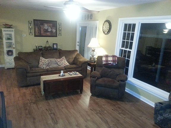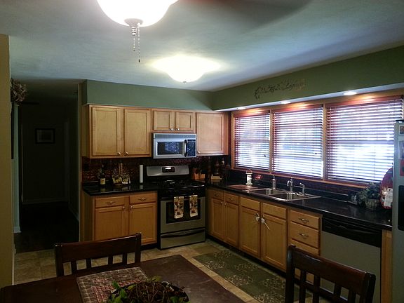 This 3 bedroom, 1.5 bathroom ranch style home has many updates over the past several years. Most recent is new flooring throughout living room and hallway in Jan. This home was completely renovated prior to me purchasing in 2007 (roof, siding, windows, flooring, cabinets, lighting, plumbing). Located just outside of town and is in a good/quiet neighborhood. The huge backyard is completely fenced in with a covered patio and an included storage unit.