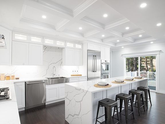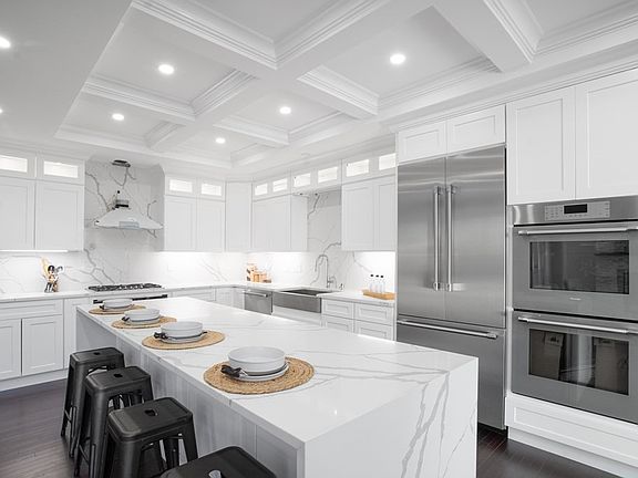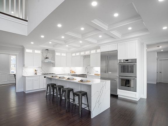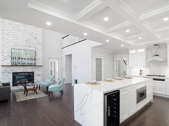 Gorgeous New Construction! 2 BDRM 4.5 BA DREAM HOME. An impeccable design in this open-concept home! Direct entry oversized 2 car garage, beautifully designed chef's kitchen with custom cabinets. Finished with a large Quartz Island & backsplash, high-end THERMADOR stainless appliance package & coffered ceilings & wainscoting throughout common areas. The kitchen is adjoined by a stunning family room with 18ft ceilings & a stone-wrapped gas fireplace! Off the family room is a large rear deck, perfect for gatherings! 1st FL is finished with an elegant ensuite, dining room & living room, which flows to the front entry grand foyer & large staircase to the 2nd level. 2nd FL Primary boasts a tremendous 40ft Suite, custom closet w/ wine fridge, an electric fireplace, a spa-like bathroom with a rain shower, body wash in a glass-enclosed shower, plus a deep soaking tub. 2nd FL finished w/ 2 spacious rooms, full BA & laundry. Finished lower level is 1500sqft walkout w incredible 10ft ceilings