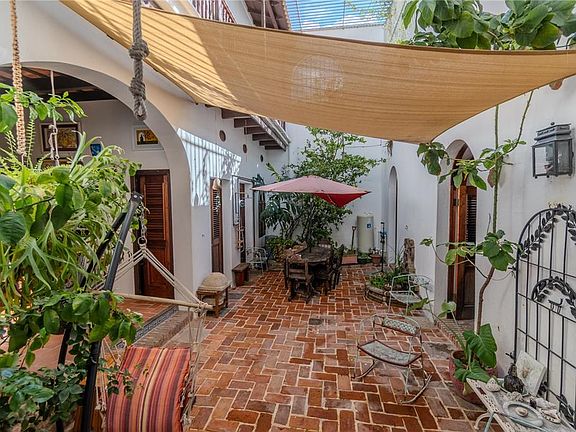 This exceptional colonial residence embodies history, art, and a touch of magic. Villa Laurel on Cruz Street is perfectly positioned between the vibrant Calle San Sebastian and the iconic Avenida Norzagaray. With 3,117 square feet of character and charm, this home offers a lifestyle unlike anywhere else in Puerto Rico. From the moment you step inside, you're met with soaring ceilings, curated art, original architectural details, and the warm glow of natural light flooding through the interior courtyard. The main living room opens through traditional wooden doors directly onto the cobblestone street, revealing views of historic architecture, color-drenched facades, and the unmistakable essence of Old San Juan. The home features 3 bedrooms, each with its own en-suite bathroom, thoughtfully distributed for privacy and flow, one on the first floor and two on the second. The recently renovated kitchen blends modern convenience with classic colonial design, honoring the heritage of the home while offering an elevated culinary experience. The interior patio is the soul of the property: lush, breezy, and filled with natural light. It's a sanctuary for morning coffee, afternoon lounging in a hammock, or evenings surrounded by the tranquil energy of the space. On the second floor, a rich hallway of art and wooden finishes leads you to the rooftop terrace, a private haven showcasing an unobstructed view of the sea and the iconic rooftops of Old San Juan. It's the perfect setting for sunset gatherings, stargazing, or simply embracing the magic of this centuries-old city. This is more than a home it's a way of life. A rare opportunity to live inside a piece of history where art, architecture, and serenity come together in perfect harmony.