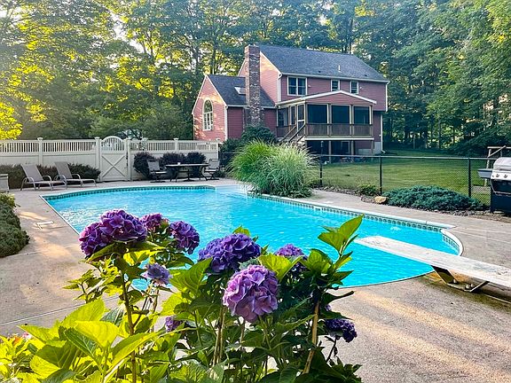 Picturesque one owner Colonial with Screened, Skylighted Porch and 2 car garage sited on 1.07 acres on a cul-de-sac in sought after Roosevelt Farms complete with a beautiful backyard oasis with a McCarthy inground pool, expansive backyard play area and firepit that is separate from the fenced pool area! This home offers Hardwood floors on both 1st and 2nd floors! Huge cabinet Kitchen offers a center island, walkout bay dining area leads to Screen Porch, pantry closet and a wide cased opening leads to the cathedral ceiling, fireplaced Family Room with Palladian window! Entertainment size Dining Room with moldings! Open Living Room/Office off Foyer. 1st floor half bath/laundry with tile floor. Cathedral Main Bedroom offers a private Main Bathroom and good-sized walk-in closet. 3 nice secondary bedrooms with closets are serviced by the Hall Bathroom. Lower level tiled mudroom entry and a Bonus Room with a wood laminate floor! Top-rated schools! Proximate to commuter rail & major routes!