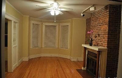 This two bedroom, one bathroom, apartment features a living room, dining room, and eat-in kitchen with appliances including a microwave and dishwasher. There is hardwood flooring throughout the majority of the space with tiling in the kitchen and bathroom. The unit has exposed brick walls, ceiling light fixtures, ceiling fans, ample closet space, radiator heat, a fireplace, shared in building laundry and backyard patio. Heat included. On street permit parking. Pets OK. This unit is a four minute drive to the Harvard transit station.
