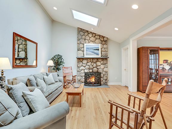 Conveniently located, this five bedroom Colonial beckons from the start with a charming tiled foyer which opens to a cozy den. A mudroom with cubbies offers two access points. A small set of stairs lead to an impeccable powder room, then an open kitchen with breakfast nook overlooking the deck and level, landscaped yard. Off the kitchen is a dining room and a living room area with a field stone, wood-burning fireplace, cathedral ceilings and great view. Skylights and windows illuminate the private, first floor master bedroom with bath. Upstairs the first bedroom offers a bath en suite , the hallway leads to another full bath, and three more immaculate bedrooms. The house boasts original hardwoods, surround sound, a sprinkler system and is in immaculate, move in condition.