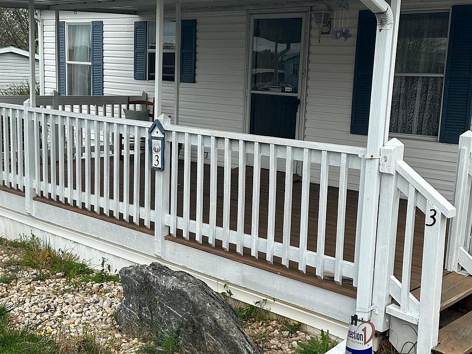 Nice Double Wide in 55+ Community. Open floor plan, LR/DR, Kitchen, 3 Bedrooms and 2 Bath. Side porch , Front Porch and Shed. House is handicap ready including an outside entrance ramp. Off Street Parking. All appliances stay. Must have park approval, see documents.