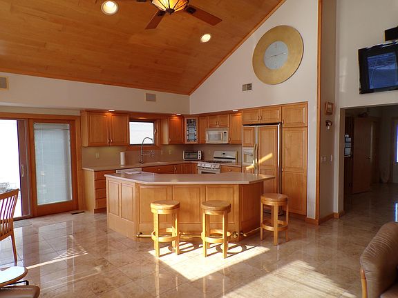 This home has the WOW factor! Custom remodel. The wood chosen in the home matches the trim, cabinets and furniture. Light and bright sun filled rooms. Enter the home and you will see Porcelain tile and a $3000 medallion on the entry way floor. The kitchen, dining and family room all share a fabulous wall of windows overlooking the backyard and lagoon. The kitchen offers corian countertops and center island. The front office/bedroom has beautiful custom charirail. The 2nd guest room is very sizeable and perfect for 2 sets of bunks. The master retreat has sliders to the rear deck and a WIC. The home is outfitted with a security sysem, surround sound and outdoor lighting. (cont)