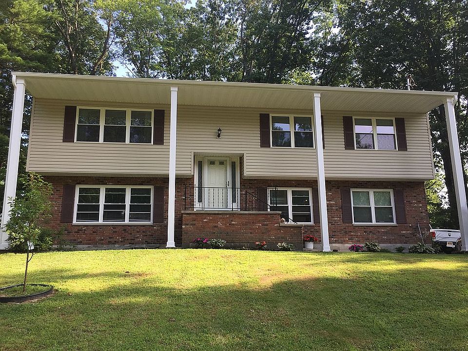 It's all been done for you. This turn key totally updated brick fronted raised ranch is situated on a park like setting & within walking distance to Mill Road Golf course. From the moment you enter, you will see that the current owners spared no expense. HW flrs & freshly painted throughout. Formal LR and dining area feature recessed lighting and crown molding. 2nd flr deck is composite and great for BBQ's. Beautiful kitchen features granite counters, SS appliances, and glass tiled back-splash with corner counter area for storage. 3 BR's & 2.5 baths. All bathrooms are updated with top quality material and feature tiled tub/showers w/ specialty lighting. Large family room w/ masonry fire place leads out sliders to a great yard. 1st flr laundry is an added bonus. Newer furnace. 2 car GR