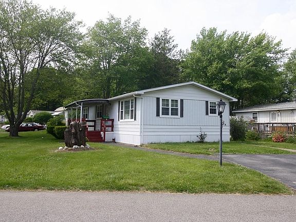 Gently used and well maintained two bedroom Marlette manufactured home with several updates including roof, windows, appliances and flooring. Large living room, eat in kitchen, and two good sized bedrooms including a master with dressing area and private bath. Bath vanities in both baths are being replaced. Central air, covered porch and a storage shed are included. Located on a level corner lot in Pine Hill Estates, a 55+ community. Low monthly land lease includes town water, sewer, weekly rubbish removal, snowplowing of community roads and more. Come see an affordable retirement home.