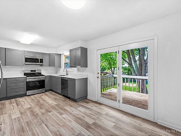 Attractively remodeled 3 bedroom 2 bath raised ranch. Updated eat-in kitchen with newer cabinets, quartz counters, stainless steel appliances and sliders that lead to a private deck and large yard. Sizeable living room with vaulted ceilings and fireplace. Large primary bedroom with updated full bath and wic. Two additional bedrooms and another recently remodeled 2nd full bath complete the main level. The walkout lower level has a spacious family room, laundry room and storage space. Attached 2 car garage. Many recent updates! Tucked into a quiet neighborhood yet just a minute from shopping/restaurants of the Randall Rd corridor and quick access to I90. Walking distance to the lake, parks and the Nature Preserve.