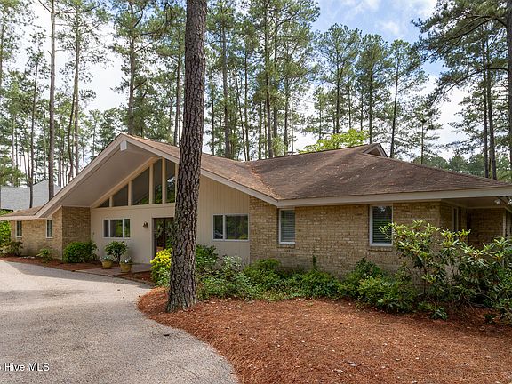 Discover charm, character, and endless potential in this chalet-style home perfectly situated on the 3rd hole of the Red Fox course in Foxfire Village. Boasting a bright, open layout and timeless architectural features, this home offers serene golf course views and a peaceful lifestyle surrounded by nature. Step inside to a soaring vaulted ceiling and walls of high windows that flood the living spaces with natural light. A double-sided, floor-to-ceiling brick fireplace anchors the open-concept living and family rooms, both with sliding glass doors leading to the back patio, ideal for entertaining or simply enjoying your morning coffee while overlooking the golf course and large backyard. The living room is open to a dining area and the kitchen with granite countertops, a central island, and hardwood floors that flow into the adjacent dining area. The primary suite features its own access to the patio, a large walk-in closet, and en-suite bath with a tiled step-in shower and decorative vanity with counter sink. Each of the two guest bedrooms offers the comfort of private full baths, while the hallway includes an additional walk-in closet for extra storage. A generous laundry room with cabinetry, utility sink, counter space, and a fourth full bathroom connects to a large, enclosed wrap-around porch with spectacular backyard nature and golf views, ideal for a sunroom or hobby space. Sitting on a generous, tree-filled lot with mature landscaping, this home offers privacy and room to grow. With a little updating, this golf-front gem could be transformed into your dream home or weekend escape.