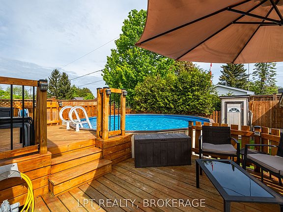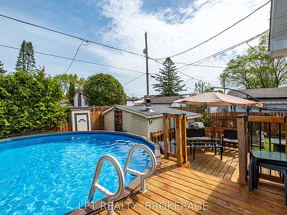 Situated in the scenic lakeside area of Amherstview, this delightful elevated bungalow offers a wonderful chance for a family to make it their new home. Featuring 3+1 bedrooms, 1.5 bathrooms, a spacious workshop, and a welcoming above-ground pool, this well-kept property is filled with possibilities. Its flexible layout includes an option for a lower-level in-law suite, which has its own private rear entrance, perfect for accommodating extended family or for those looking to generate additional income. Stepping inside, the bright, open front entrance leads to a carpet-free main level. The sizable living room features new laminate flooring throughout the living area, adding a modern touch and durability, along with a large front window that bathes the room in natural light. The modern eat-in kitchen is well-equipped with ample storage and prep space, updated kitchen cabinets, tiled floors, and a handy back door leading to the fenced backyard, large deck, and the pool. The three main level bedrooms are spacious and maintain a clean, carpet-free look. Downstairs, there's a potential extra bedroom, a large recreational space, and a half-bath. This level also includes storage space and laundry facilities. Located a short walk from Lake Ontario, parks, and sports fields, with nearby essential shopping, this impeccably maintained bungalow is nestled on a lot resembling a park. The family-friendly neighborhood and easy access to city bus routes enhance the desirability of this home.