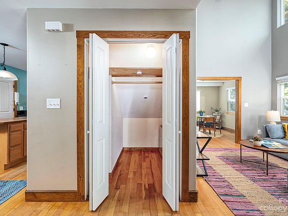 Newer home in an amazing walkable West Asheville neighborhood close to Malvern Hills Park and Pool, Lucy Herring Elementary, and Haywood Road’s bustling business district. House connects beautifully with the outdoors including a sunny balcony off of the primary suite. Gorgeous features include stained wood trim, rounded drywall corners, custom built-in shelving and more. Cathedral ceiling adorns the airy and spacious light-filled living room. Kitchen boasts granite counters, stainless appliances, ample cabinets and counters, a walk-in pantry and a butcher-block island. Three bedrooms and two baths on the second level includes the primary suite featuring gleaming hardwood floors, two closets including a large walk-in closet, ensuite bath and private balcony. Recent updates include garage conversion to office/studio space (2019), newer tankless hot water heater, and newer heat pump. Converted garage makes a great addition with many possibilities. See brochure and video for more info.