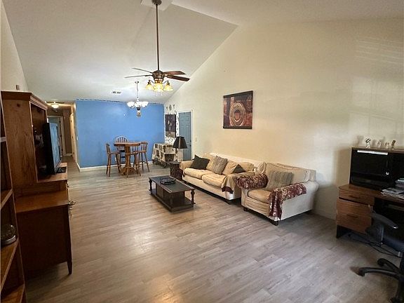 Step into this beautifully designed home that perfectly balances style and functionality. The expansive open floor plan welcomes you with soaring cathedral ceilings in the living room, creating a bright and airy atmosphere. Entertain guests in the seamless living/dining combo, or whip up dinner in the fully equipped kitchen, boasting a refrigerator, stove, microwave, dishwasher, and a convenient breakfast bar.
