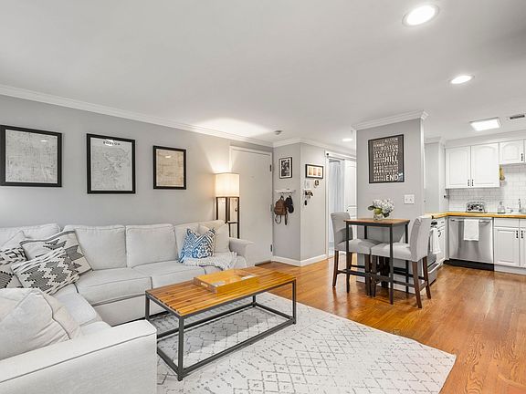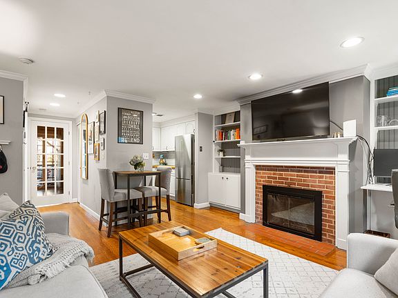Located on a charming, gas-lit street in the heart of Charlestown, this beautifully updated 1BR/1BA apartment offers 660 sq ft of thoughtfully designed living space. The sun-filled living and dining area features a mantel, custom built-ins, crown molding, and recessed lighting, creating a welcoming and cozy atmosphere. The modern kitchen boasts white cabinetry, stainless steel appliances, a subway tile backsplash, and butcher block countertops. At the back of the apartment, the spacious bedroom includes a custom walk-in closet for added storage. The stylish bathroom features an extra-wide vanity, herringbone tile flooring, and a bathtub. Enjoy outdoor space with a private balcony accessible via a glass slider. Additional amenities include hardwood floors throughout, in-unit laundry, central air conditioning, private basement storage, common grill area, and 1 car off-street parking. Cats only per condo association rules. Available 1/15/25.