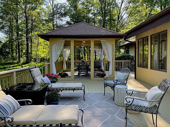Ready for this stunning light-filled Custom Contemporary home that has been updated beautifully, cared for meticulously and freshly painted. In beautiful Hunterdon county, this spacious Clinton Township home is on a beautiful tree lined cul-de-sac. It features 2 Master Suites with walk-in closets and renovated Bathrooms, showers and a soaking tub. The remodeled Kitchen features granite counters and stainless steel appliances. The Kitchen opens to a large Breakfast Room and a gorgeous Sunroom. A Powder Room is off the Hallway. A spacious formal Dining Room surrounded by windows has built-ins with granite counter. The dramatic Living Room has a wood burning stone fireplace and circular stairs leading to the 3rd Bedroom/sleeping loft. The home features an office. Entertain family and friends in your fabulous Deck Area with a Gazebo. This house has 2602 feet of basement with high ceilings that is ready for expansion possibilities. This home’s location affords excellent schools, quick access to Flemington and a stones throw to beautiful Historic Clinton. Convenient access to highways 31 & 78 and buses & trains to NYC.