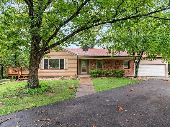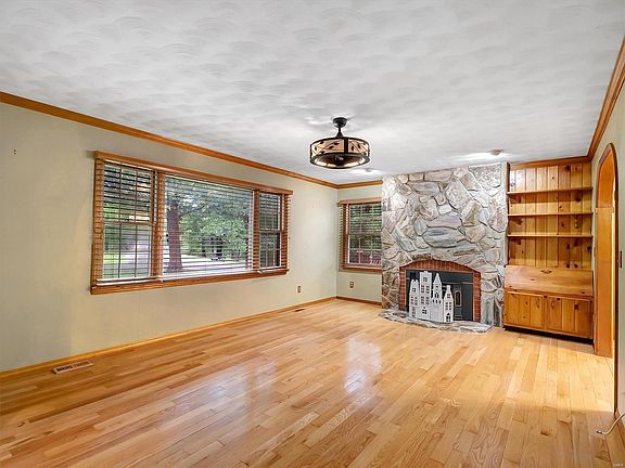This stunning home is nestled within the vibrant community surrounded by conservation areas in Lakewood Hills. Located in the coveted Rockwood school district with Jefferson County taxes, this charming residence boasts a unique blend of rustic charm & modern comforts. As you step inside, you are greeted by solid pine 6-panel doors throughout, accentuating the craftsmanship of this home. The focal point of the living room is a wood-burning stone fireplace, crafted from local creek stones, adding warmth & character to the space. Vaulted pine ceilings in the main floor primary suite create an airy atmosphere, complemented by an ensuite bathroom for your ultimate relaxation. With 3 additional bedrooms & a full bathroom, there is ample space for family or guests. The beautiful deck with custom railings is perfect for enjoying morning coffee or evening sunsets amidst the serene natural surroundings. This is more than a home; it's a lifestyle offering the best of both nature & community.