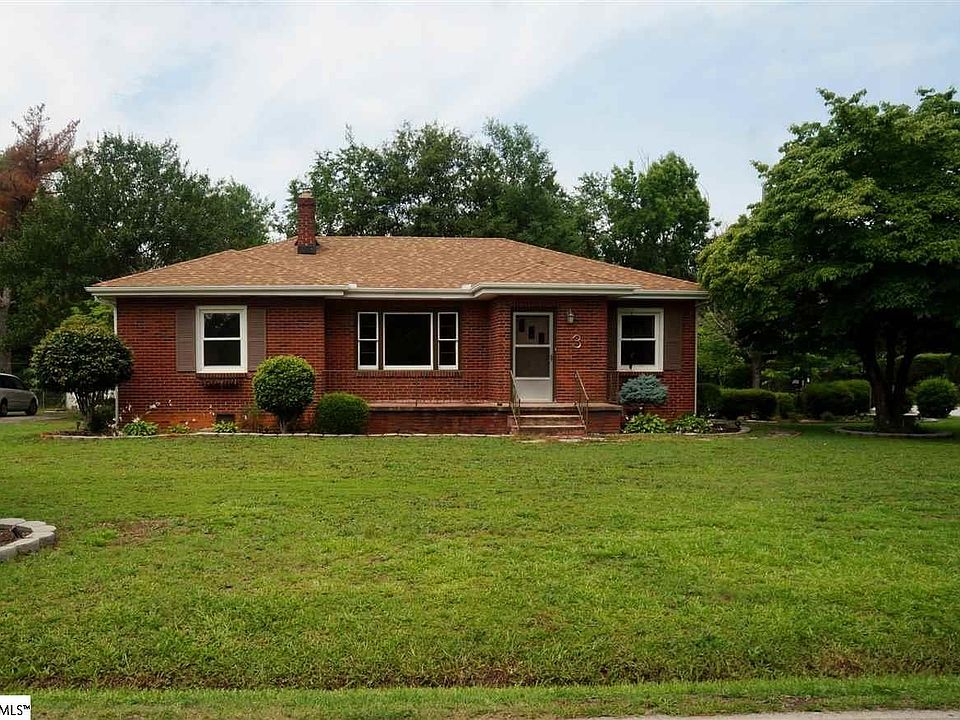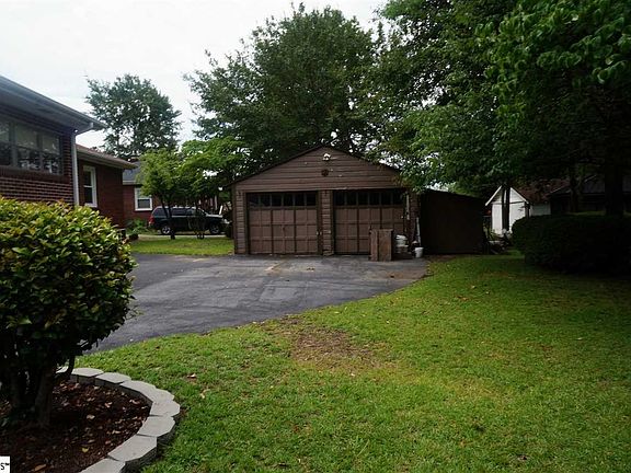 Adorable brick bungalow situated on oversized .38 acre corner lot. 2BR 1BA with over 1300 square feet. Large 2 car detached garage. Large front porch Beautiful hardwood flooring. Owner has been transferred and hates to leave. Owner has sanded cabinets and they are ready for new paint. Beautiful new tile floor, walls and tub/shower in bathroom. The top part of bathroom walls and ceiling need paint. With a little updating and painting this can be a wonderful home. Located only 4 miles down Wade Hampton Blvd to Downtown Greenville. Award winning League Acadamey and Wade Hampton School district. New Roof in approx. 2013