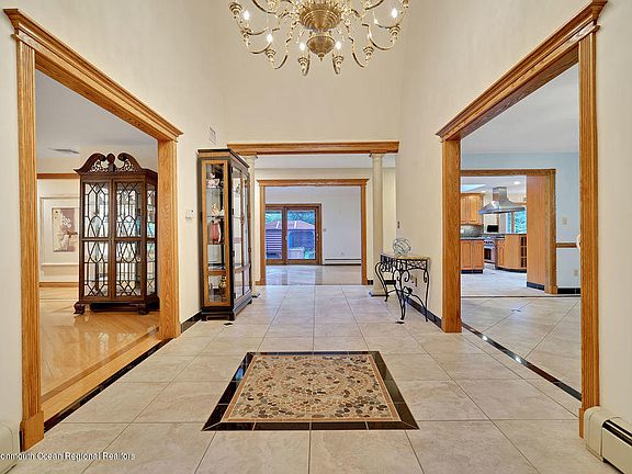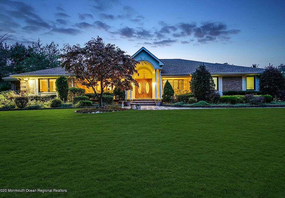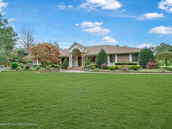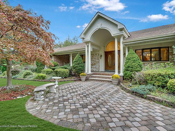 Opportunity Knocks!! Luxury 4 BR, 5 Full Bath Ranch w/ FULL FINISHED BASEMENT w/ 2ND KITCHEN in highly sought neighborhood of Holmdel. Situated on nearly one flat Acre, features include inviting Front Porch w/ Paver Walkway, large Room Sizes, Hardwood floors thruout, awesome Center Island Kitchen w/ High End Appliances, Family Room w/ Fireplace, Four generous sized Bedrooms including Master Bedroom suite w/ Master Closet w/ Organizers, Master bath w/ Glass Shower, huge Full Finished Basement w/ Full Kitchen w/ Thermador Stove, Full Bath for Mother-Daughter Possibilities, Sauna, and separate Entrance, large backyard w/ Paver Patio, outdoor Hot Tub and Kitchen, and plenty of Grass to play, plus top Rated Holmdel schools, makes this, the perfect Holmdel choice for you, the next Owner
