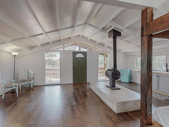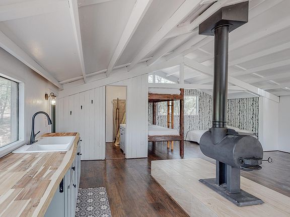 Fantasize about getting away to a private cabin on 2.4 acres of serene, forested land this weekend? YOU CAN! Secluded, accessible and affordable, this cabin has been meticulously rebuilt. Updated electrical panel, new flooring, bathroom remodel, wood stove for plenty of heat, and a renovated kitchen area complete with custom wood countertop. Enjoy coffee or a night cap from your west facing balcony, cozy up with a book or explore the woods. Cabin is on Septic System and water source is hauled water with brand new tank and pump. All permits have been obtained for the rebuild. Owner is also selling adjacent lot and home at 2 Swallow, and both could be purchased and combined to make this your ultimate move to the East Mountains. Would also make a trendy Airbnb! 1k Allowance to finish shower!