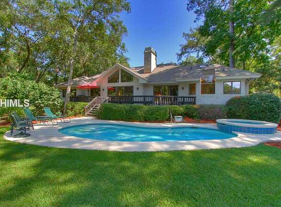 Custom built with open floor plan 3 bedroom, 2.5 bath beach oriented home. On cul-de-sac with a gorgeous lake view. Extra large deck overlooks pool, hot tub, new dock and lake. 2 car garage with lots of storage and work areas. Gas fireplace in living room. Large island kitchen, eat-in kitchen and dining room. House features multiple skylights, tray ceilings and much more. This beautifully decorated home very close to the beach would make a perfect 2nd home, family retreat or rental property. (909113)
