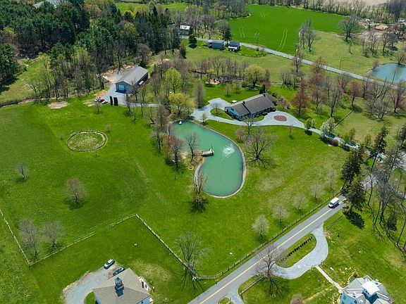 Horse lovers will go wild for the propertys awesome barn, featuring four horse stalls and feed prep space, and an oversized garage door for multiple car or RV storage potential with a drop station for an RV. Split-rail fencing encloses a large space for horses to graze before strutting their stuff in the separate riding ring. Another garage also offers storage, a small bay for a mower, a workshop, and a powder room. Additionally, the 2nd level has a one-bedroom, one-bathroom apartment for groundskeeper, guests or a potential rental.