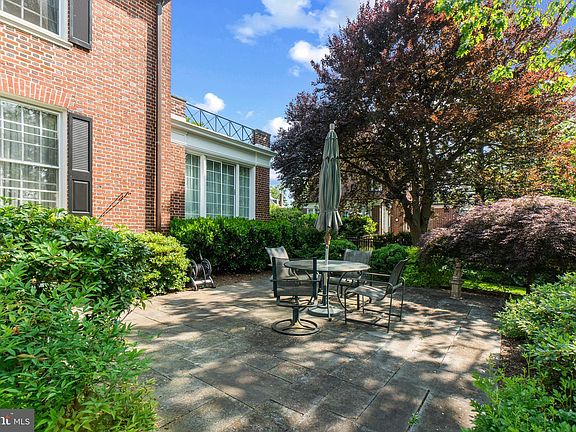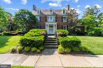 Classic Georgian home situated on one of Guilford's loveliest streets. This gracious home features 5 bedrooms, 3 full and 2 half baths, grand foyer with polished checkerboard marble floors, 9 foot ceilings and intricate moldings. The entrance foyer has double entrance doors with tiled entrance vestibule and separate guest closets. The powder room is located at end of foyer. The spacious living room has gas fireplace and abundant natural light. Formal dining room is perfect for entertaining. Sunroom off living room has walls of windows. This sun-filled room has thermopane UV protection windows. Next to dining room is the walnut paneled library with gas burning stone fireplace and built-in bookcases. Updated kitchen opens to a sunroom/breakfast room which leads to blue stone patio. Leading to the second floor is a grand staircase with leaded stained glass landing window. Second level master bedroom has crown molding, recessed heating radiators and zoned electric baseboard, French doors to balcony, his and her closets. Bedroom 2 has crown molding, French doors to balcony, double dressing closet. Bedroom 3 has crown molding, separately zoned electric heating, oversized closet with laundry chute. Bedroom 4 has oversized dressing closet, additional two half closets. Bedroom 5 has walk-in closet. Third floor has versatile bonus space. Can be utilized as an office, play room, den or additional bedroom. This home has been lovingly maintained. Two beautifully renovated full baths finished in 2021. The basement level has been fully water-proofed with French drain, sump pump and flexi-seal vapor barrier. Enjoy the lovely private blue stone patio; perfect for your cocktails or your morning coffee. This home has a lovely level back yard with incredible landscaping. Irrigation system in front and back yard. Aggregate driveway leads to 2 car garage. This property is steps from iconic Sherwood Gardens and within walking distance to restaurants, Johns Hopkins University , Loyola University and College of Notre Dame University.