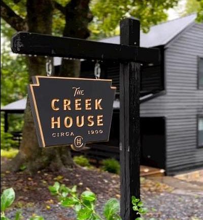 Don't miss the opportunity to own one of the premier Airbnbs in Southern York County Pennsylvania! The Creek House is situated on the Northern Central Railway Trail - perfect for hiking or cycling. With the occasional passing of the Northern Central Railway tourist train, guests have the opportunity to wave to riders and experience life of a different era and pace. This very popular income producing property was renovated for Magnolia Network's In With The Old In 2020 by a local team of professional designers and creators. Since the show aired the business has carried a steady booking for people interested in exploring our beautiful community as well as historic York, Lancaster, Gettysburg, and Baltimore. This boldly designed property is situated directly on the Heritage Rail Trail about 5 miles north of the Maryland Pennsylvania line in the historic town of Railroad Pennsylvania. The property features 2 bedrooms and an elegant bath with farmhouse sink, soaking tub, and tiled shower. The spacious open concept kitchen boasts custom handcrafted cabinets, locally crafted walnut floors, and honed black granite countertops that surround high-end GE Cafe Matte Black appliances. The family room is spacious yet cozy with an artisan built retracting television credenza surrounded by a sweeping archway. The back deck overlooks the south branch of the Codorus creek and a fantastic lawn with mature trees, a chicken coupe, firepit area, and scenic yet private views of Southern York County's beautiful rolling hills. The full length front porch overlooks the Heritage Rail Trail as the North Central Railroad passes by with their weekend excursions. The property is turn-key and includes all furnishings, decor, and appliances. The quality of -design and reconstruction of this property is sure to impress.