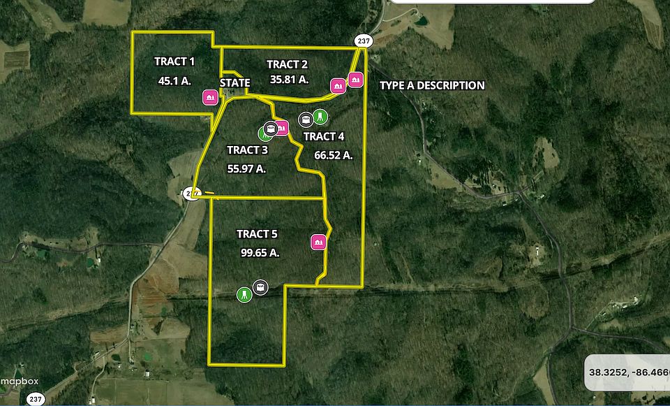 (Tract 3) This all-timber tract in Crawford County, IN, offers an exceptional blend of accessibility, privacy, and natural beauty. With 2,200'+ of frontage along State Road 237, just south of English and north of Grantsburg, the property features a secluded ridge-top build site overlooking an impressive turkey foot-shaped drainage with striking rock-lined wet-weather drainages and diverse natural terrain.While the tract benefits from substantial road frontage, the seller has constructed a 4,000'+ shared road along its eastern boundary, separating Tracts 3 and 4 and extending to the powerline clear-cut on Tract 5. This well-planned access enhances the property's development potential, hunting opportunities, and recreational use.A 1+/- acre ridge-top opening, located nearly 700' inside the property, provides a secluded cabin site or an excellent location for a wildlife food plot. The property also boasts an established trail system, scenic rock-lined drainages with seasonal waterfalls, and prime deer and turkey habitat, making it an ideal retreat for outdoor enthusiasts.Bordering Hiland's Overlook State Park, this tract shares breathtaking panoramic views and stunning Southern Indiana sunsets. Its prime location also offers easy access to Marengo Cave, Patoka Lake, Hoosier National Forest, Leavenworth and the Ohio River, and the renowned French Lick Resort Casino. Whether you're seeking a private getaway, a premier hunting property, or a future home site, this one is a must-see. Schedule your private tour today!**Agent Note: Property is currently enrolled in IN Classified Forestry Program. Any acreage desired to build on would need to be removed from the program.